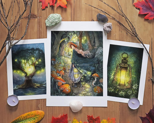 Wild Light Art Prints Bundle – Mystical Lantern, Enchanted Forest, Spiritual Tree Wall Art