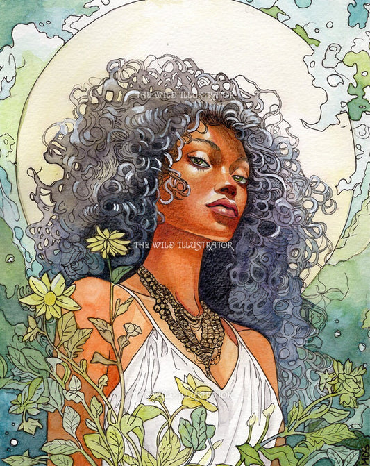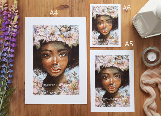 Blossom Spirit – Art Print of a Black Woman with Flowers, Spring Decor