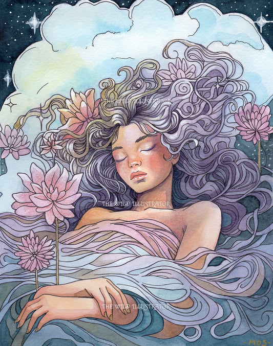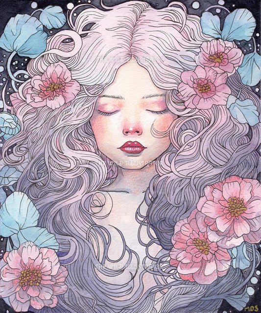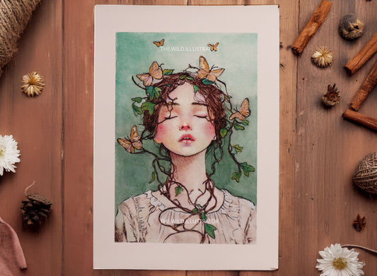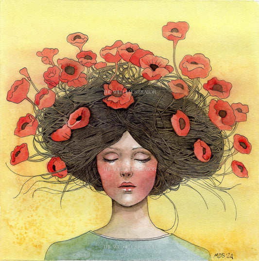 'Garden of Dreams' Floral Woman Art Print with Poppies, Botanical Decor