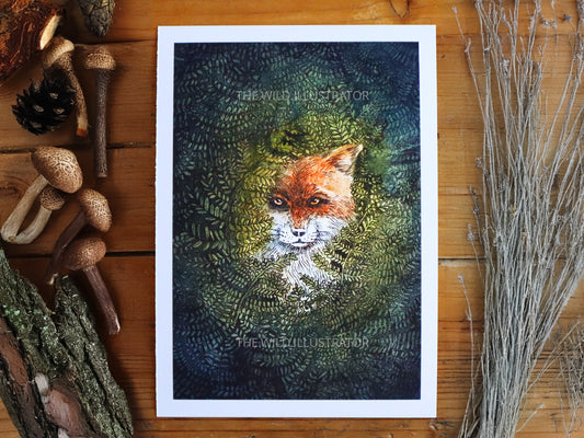 Whispers of the Ferns – Fox Art Print, Mystical Woodland Illustration