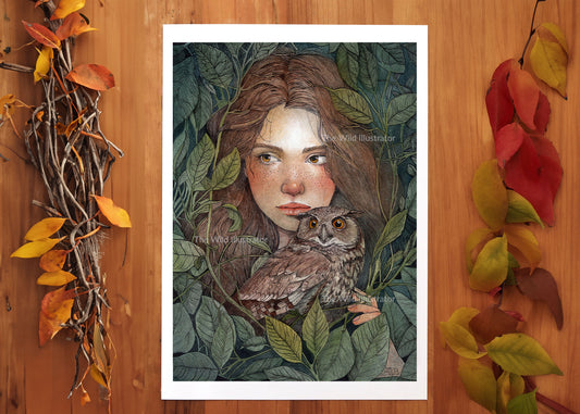 The Nest II | Owl Woman Art Print | Nature-Inspired Wall Art | Mystical Fine Art