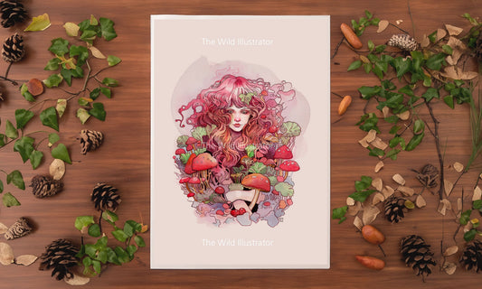 The Mushroom Queen – Mystical Forest Nymph Art Print, Fantasy Nature Decor