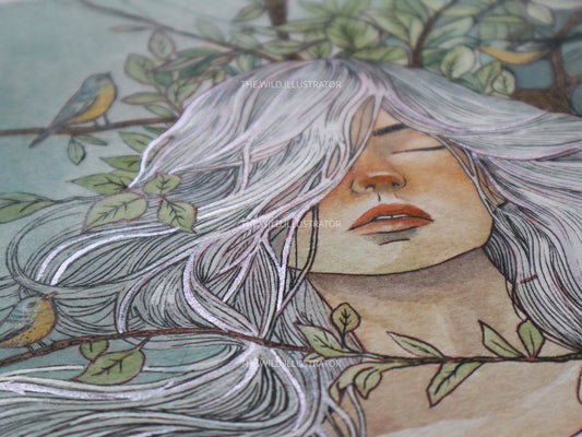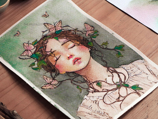 Glimmers of Nature - Mini Watercolor Painting of Woman & Butterflies
